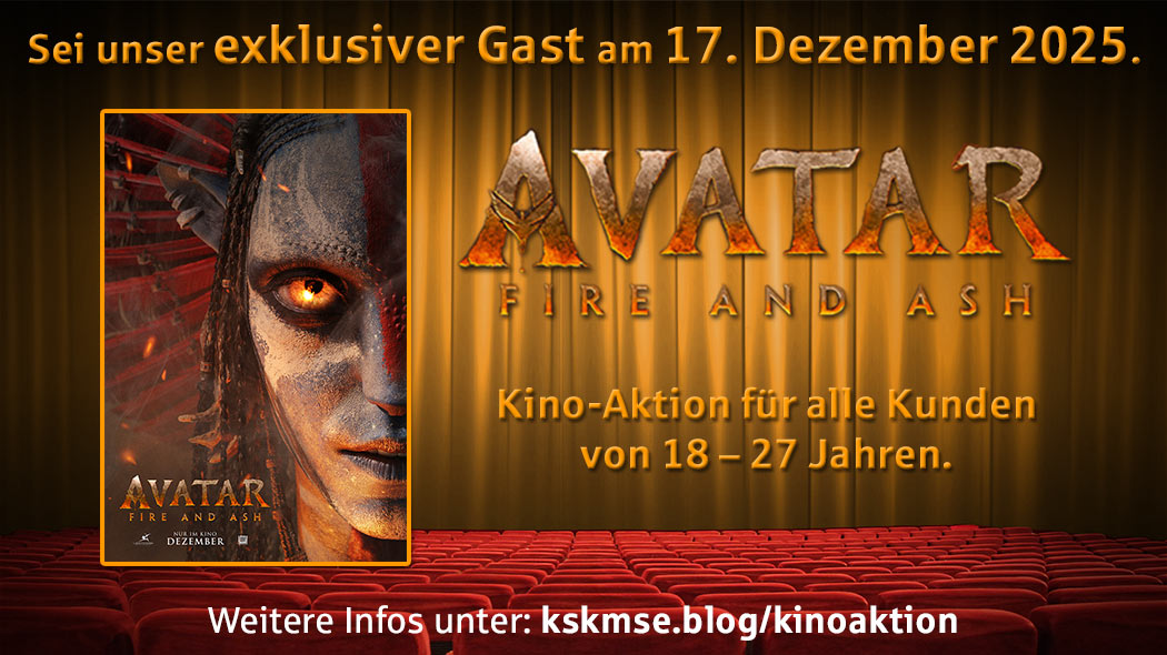 ⭐️ Wir verlosen 140×2 VIP-Kinotickets für „Avatar – Fire an Ash“ am 17. Dezember 2025 im Gloria Palast in München an unsere jungen Kunden im Alter von 18 bis 27 Jahren!
